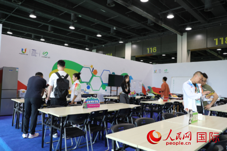 圖為位于東安湖體育公園多功能體育館內(nèi)的志愿者之家 人民網(wǎng)記者 符園園攝 |