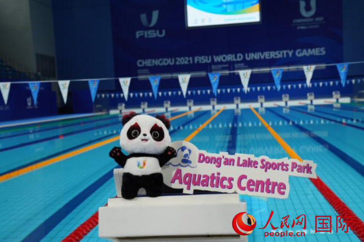圖為擺放在東安湖體育公園游泳跳水館的成都大運(yùn)會吉祥物“蓉寶” 人民網(wǎng) 周琳佳攝 |