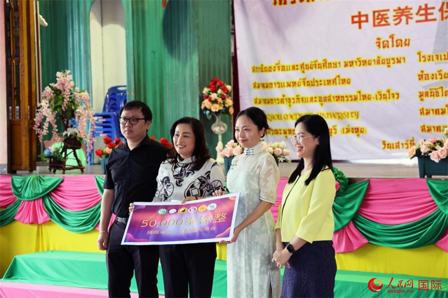 活動現(xiàn)場,泰國溫州商會向主辦方捐贈5萬泰銖,用于此次活動的部分開支。人民網(wǎng)記者 楊一攝