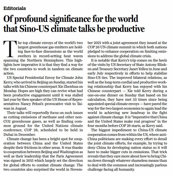 在舉世關(guān)注中,世界最大的兩個經(jīng)濟(jì)體的氣候特使舉行了面對面會談。當(dāng)前,北半球正在經(jīng)歷創(chuàng)紀(jì)錄的熱浪,凸顯了中美在氣候問題上攜手合作多么重要。