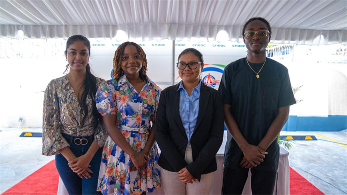 四名獲得中海油獎學金的學生合影。中海油圭亞那有限公司供圖
