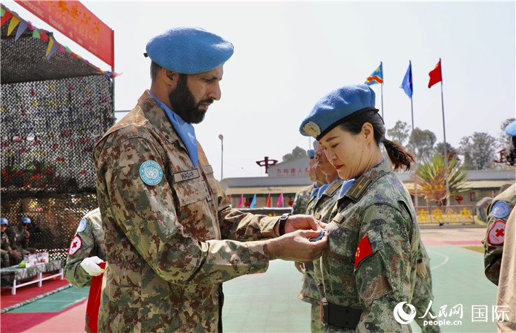 人民網(wǎng)布卡武7月25日電(記者閆韞明)7月25日,中國第26批赴剛果(金)維和部隊全體官兵被授予聯(lián)合國“和平勛章”。授勛儀式暨中國赴剛果(金)維和行動20周年慶典活動當天在位于剛果(金)南基伍省布卡武市的中國半島營區(qū)舉行。聯(lián)合國剛果(金)穩(wěn)定特派團(聯(lián)剛穩(wěn)定團)官員、駐布卡武地區(qū)各維和部隊指揮員、軍事觀察員等出席活動。