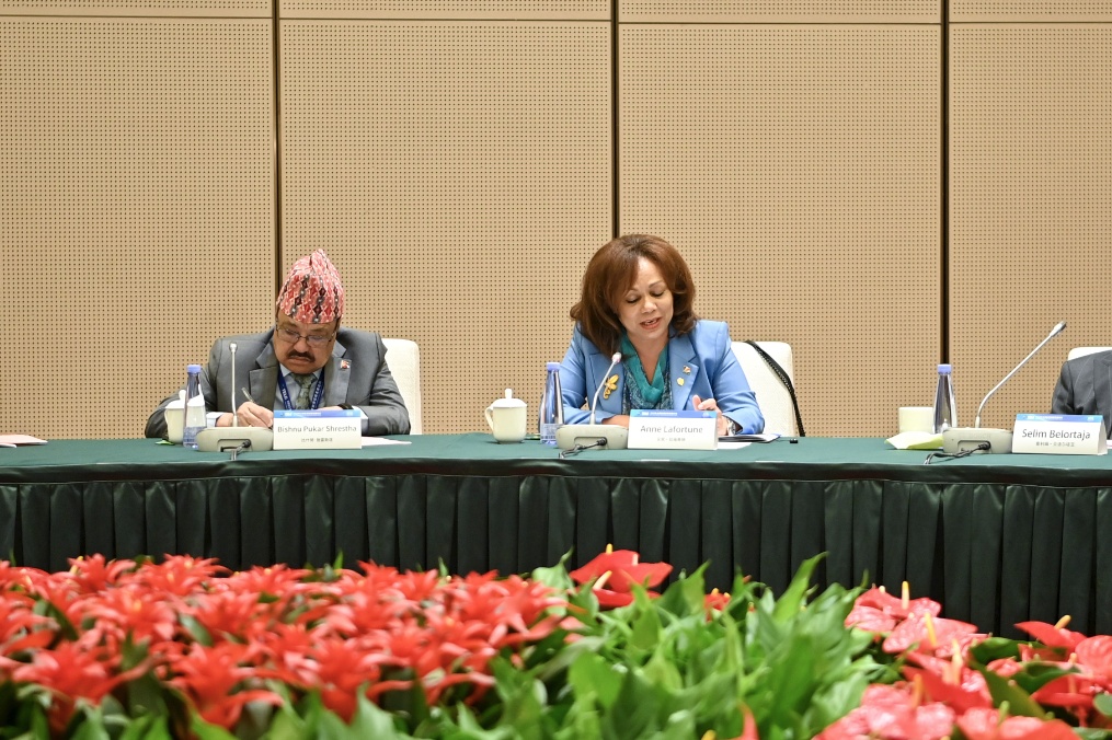 9月5日,塞舌爾駐華大使在圓桌會議上發(fā)言。新華社記者 楊晨光 攝