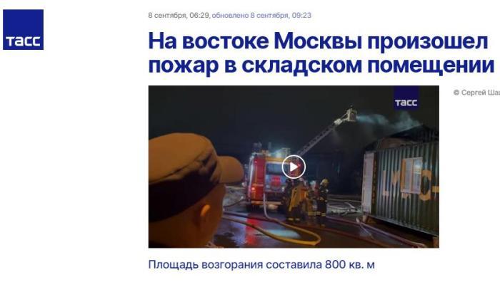 中新網(wǎng)9月8日電 據(jù)塔斯社報道,當(dāng)?shù)貢r間8日凌晨時分,俄羅斯首都莫斯科東部一倉庫發(fā)生火災(zāi),目前大火已被撲滅,沒有造成人員傷亡。