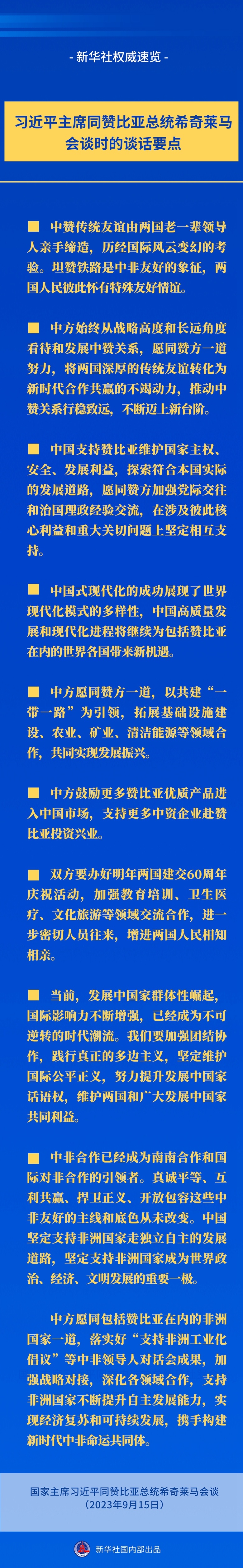 9月15日上午,國家主席習(xí)近平在人民大會(huì)堂同來華進(jìn)行國事訪問的贊比亞總統(tǒng)希奇萊馬舉行會(huì)談。一起來看習(xí)近平主席在會(huì)談時(shí)的談話要點(diǎn)——