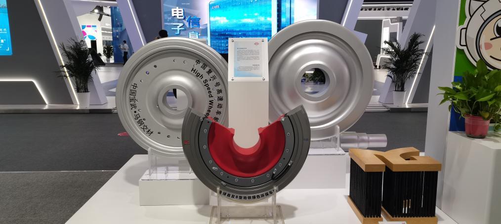 中國寶武鋼鐵集團(tuán)有限公司展出的高鐵車輪。新華社記者 胡銳 攝