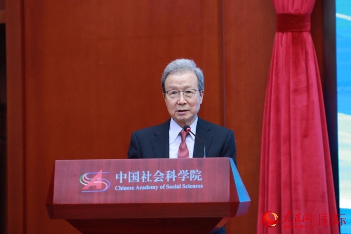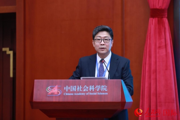 中國社會科學(xué)院副院長王昌林發(fā)表視頻致辭。人民網(wǎng)記者 陳建軍攝 |