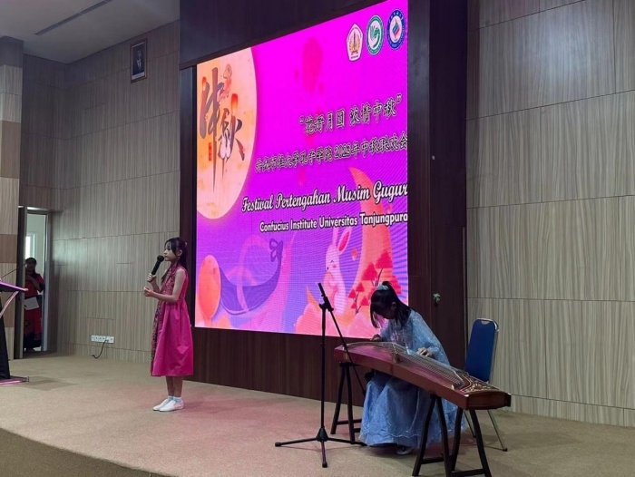 周桂在致辭中說,此次中秋節(jié)主題語言文化交流系列活動,不僅為孔院學(xué)員體驗感知中國中秋節(jié)的文化內(nèi)涵提供了機會,而且為學(xué)員通過交流提高中文水平提供了舞臺,參加此次活動的領(lǐng)導(dǎo)嘉賓與師生們在美好溫馨的節(jié)日氛圍里共度中秋,共同譜寫中印尼友誼的美好故事。
