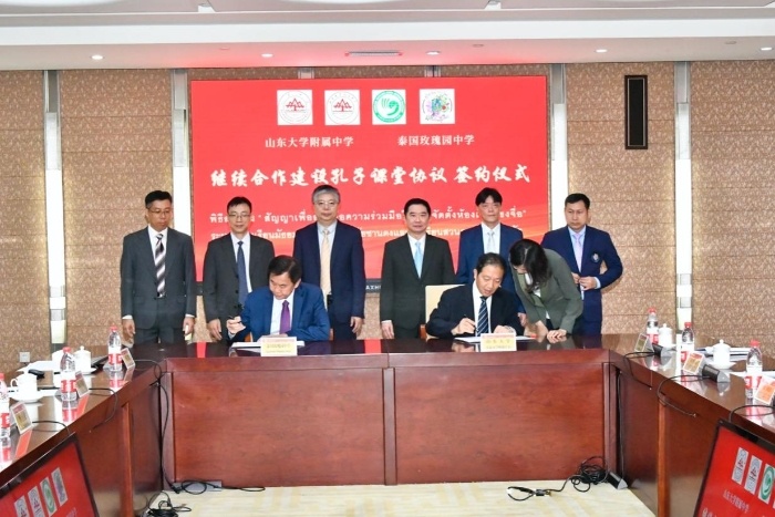 泰國玫瑰園中學(xué)創(chuàng)建于1882年,是泰國第一所近現(xiàn)代中學(xué),在泰國有10所分校。泰國玫瑰園中學(xué)孔子課堂于2009年由山東大學(xué)附屬中學(xué)與玫瑰園中學(xué)簽約共建,此次順利續(xù)簽合作協(xié)議,將繼續(xù)發(fā)揮課堂的中文教育橋梁和紐帶作用,助推中泰兩國文化交流。