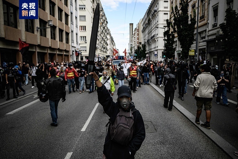 △當(dāng)?shù)貢r(shí)間23日,人們在法國里昂參加示威活動(dòng)。