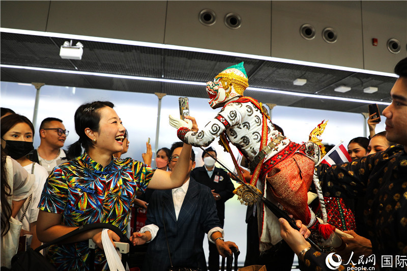 在迎接儀式中,泰國機場工作人員與中國游客友好互動。人民網記者 白元琪攝