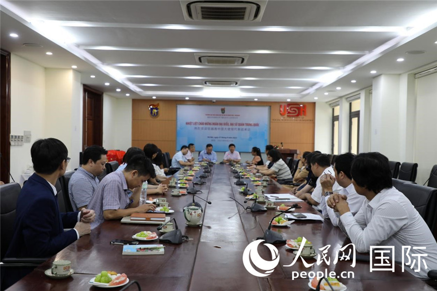 與會(huì)的曾赴華留學(xué)部分教師學(xué)者與中越兩國(guó)研究生代表親切交談。人民網(wǎng)記者 楊曄攝