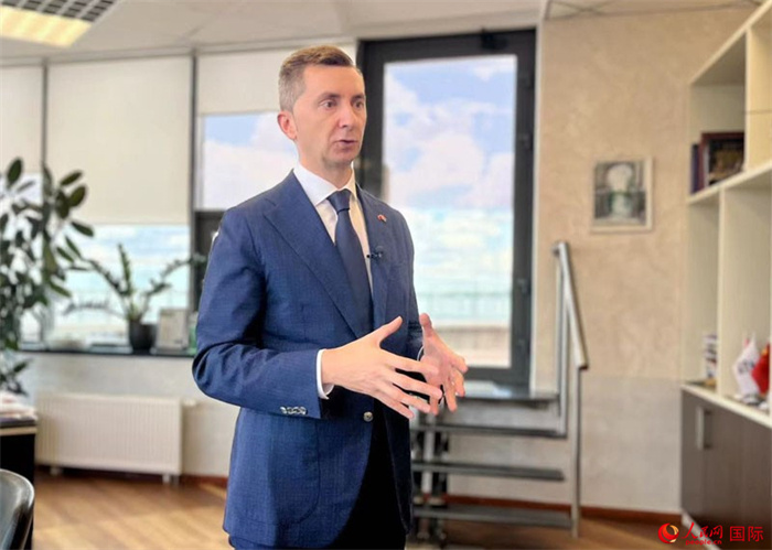 中白工業(yè)園管委會主任亞歷山大·亞羅申科接受人民網(wǎng)記者采訪。人民網(wǎng) 皇甫萬里攝