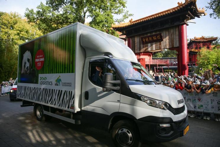 9月27日,裝著大熊貓“梵星”的汽車啟程離開荷蘭雷嫩的歐維漢茲動(dòng)物園。新華社記者鄭煥松攝