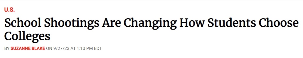 也是由于校園槍擊事件的日漸頻繁,美國學(xué)生選擇大學(xué)的方式也隨之發(fā)生變化。據(jù)美國《新聞周刊》(News Week)網(wǎng)站27日?qǐng)?bào)道,僅在2023年,全美就發(fā)生了53起校園槍擊事件?!皹屩П┝n案”(Gun Violence Archive)的數(shù)據(jù)顯示,各類與槍支有關(guān)的死亡總共有3萬多起。