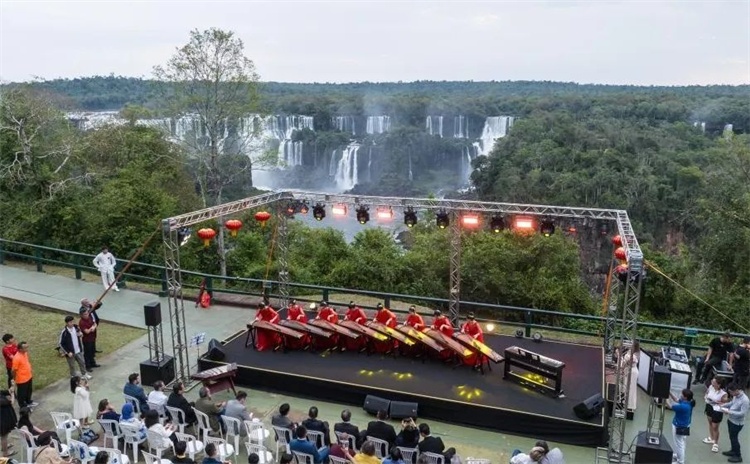 當(dāng)?shù)貢r間9月29日,由巴西圣保羅亞洲文化中心主辦、伊瓜蘇市政府和中國駐圣保羅總領(lǐng)事館作為支持單位的“瀑布之夜”中秋晚會,在世界三大瀑布之一的巴西伊瓜蘇瀑布前成功舉辦。中國駐圣保羅總領(lǐng)事館供圖 |
