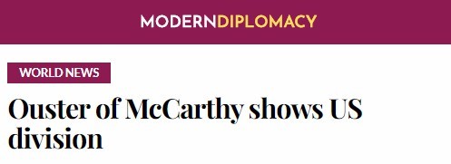 美國媒體對麥卡錫被罷免進(jìn)行了大篇幅的報道,對話題持續(xù)加溫,但實(shí)際上,這正是美國所謂民主政治的代表。按理看,正常的民主政治意味著,政治的運(yùn)作不會因?yàn)槿魏我粋€政客的職位而受到影響。但很明顯,麥卡錫被罷免讓眾議院陷入了混亂。