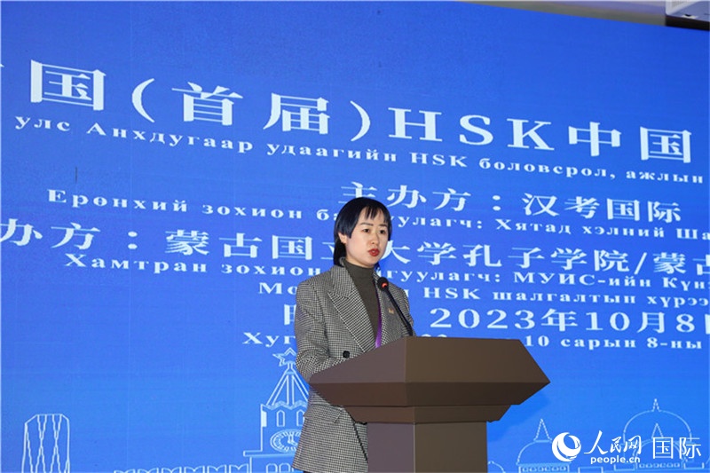 10月8日,漢考國(guó)際副總經(jīng)理黃蕾致辭。人民網(wǎng)記者 霍文攝 |