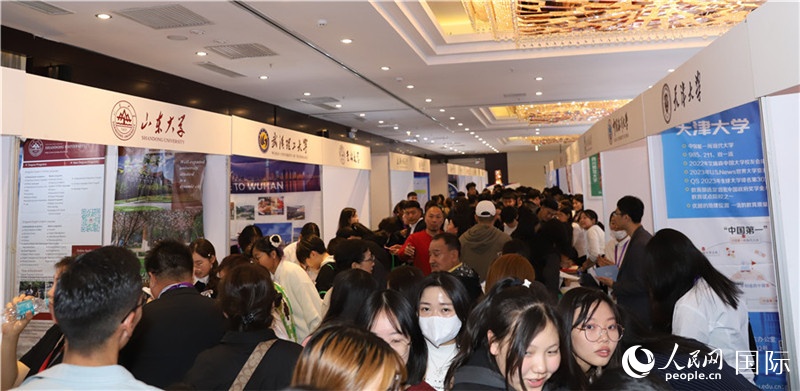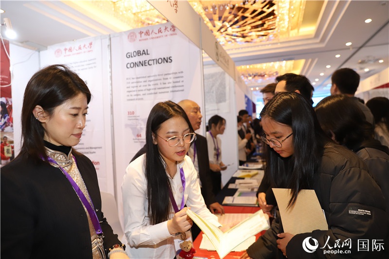 10月8日,沈敏娟(左二)大使在高校展位。人民網(wǎng)記者 霍文攝 |
