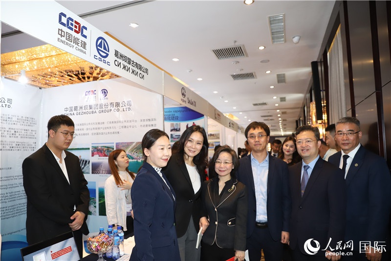 10月8日,沈敏娟(左三)大使在中企展位(左二為布拉根局長(zhǎng))。人民網(wǎng)記者 霍文攝 |