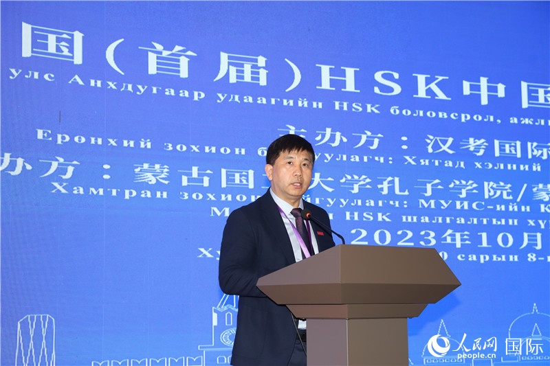 10月8日,巴特扎爾嘎拉副校長(zhǎng)致辭。人民網(wǎng)記者 霍文攝 |