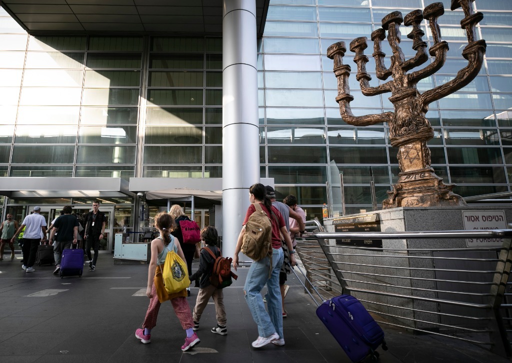 10月8日,旅客來到以色列特拉維夫附近的本-古里安國際機(jī)場準(zhǔn)備乘機(jī)出行。(新華社記者陳君清攝)