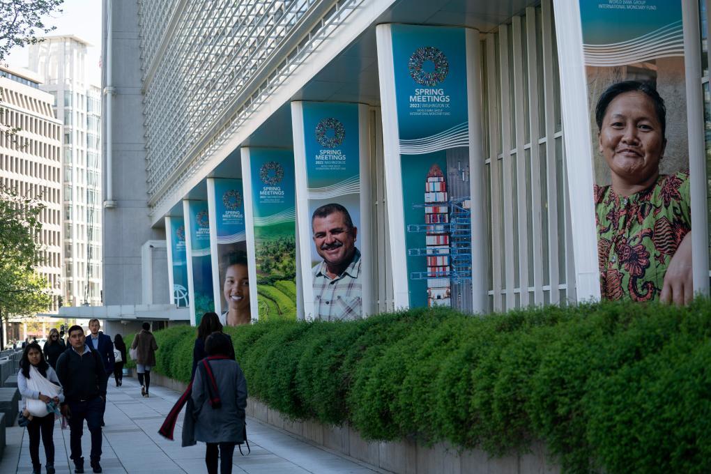 4月10日,在美國(guó)首都華盛頓,行人從世界銀行大樓前走過。新華社記者劉杰攝