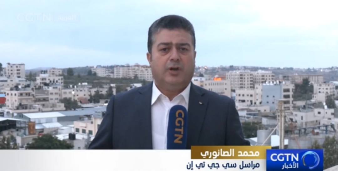 總臺報道員穆罕默德·薩努里,在巴勒斯坦拉姆安拉,回傳大量當?shù)匦侣剤蟮馈?