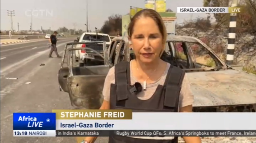總臺報道員斯蒂芬妮·弗里德,在以色列南部邊境地區(qū)探訪遭襲地區(qū),通過新媒體直播介紹以色列政府采取的反制措施。