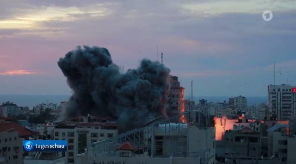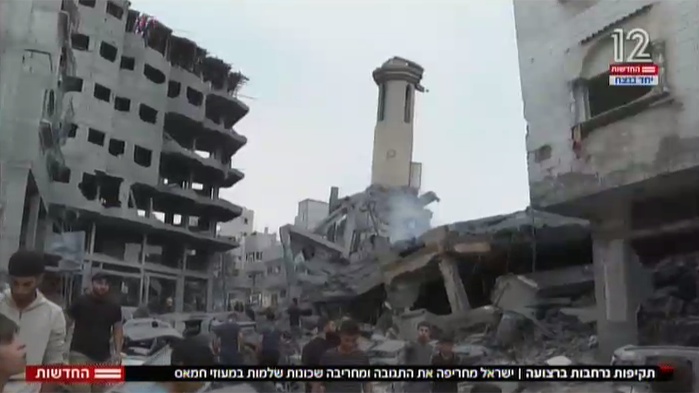 “我們現(xiàn)在正處于(加沙地帶)此前遭以色列軍機摧毀的一座大樓的廢墟上?!?