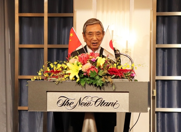 圖為日本國(guó)際貿(mào)易促進(jìn)協(xié)會(huì)會(huì)長(zhǎng)河野洋平致辭。