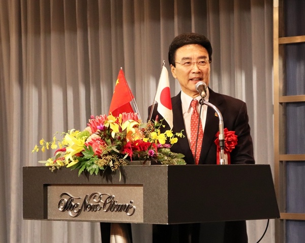 圖為中國(guó)駐日本大使吳江浩致辭。