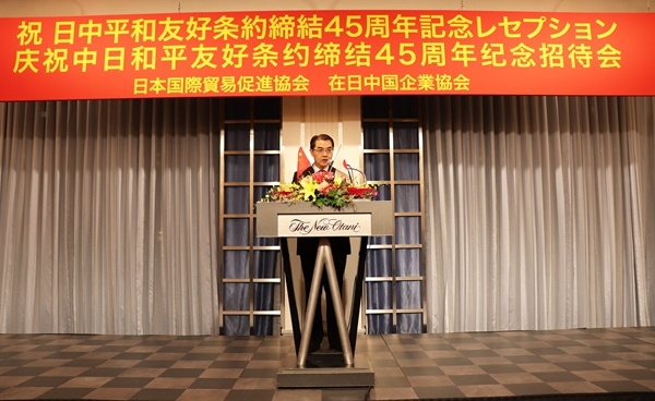 中國(guó)駐日本大使吳江浩在致辭中說(shuō),中日間存在各種新老問題,但也有改善發(fā)展的機(jī)遇。我們共慶紀(jì)念中日和平友好條約締約45周年,就是要重溫和平初心、堅(jiān)定友好信念,推進(jìn)互利合作。就經(jīng)濟(jì)領(lǐng)域合作而言,中日在綠色低碳、數(shù)字經(jīng)濟(jì)、高端制造、人工智能、生物技術(shù)、醫(yī)療康養(yǎng)等領(lǐng)域都大有前景。希望雙方共同搶占先機(jī),提高合作質(zhì)量,提升合作水平,為兩國(guó)發(fā)展繁榮和民眾福祉做出更大努力。