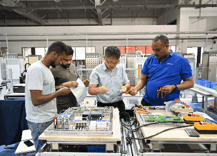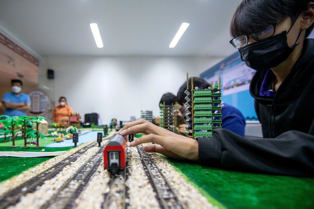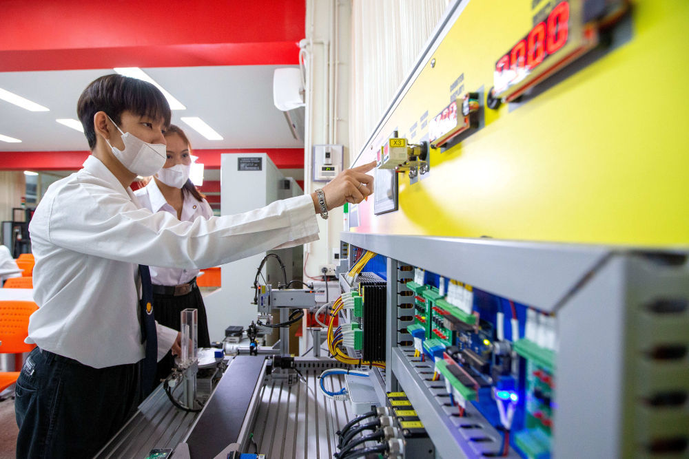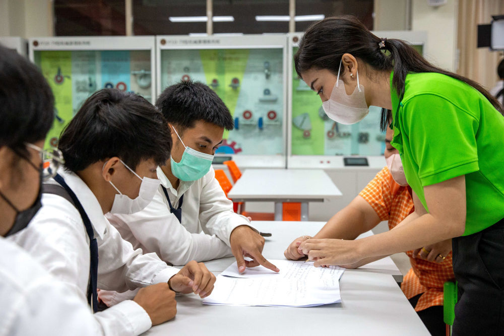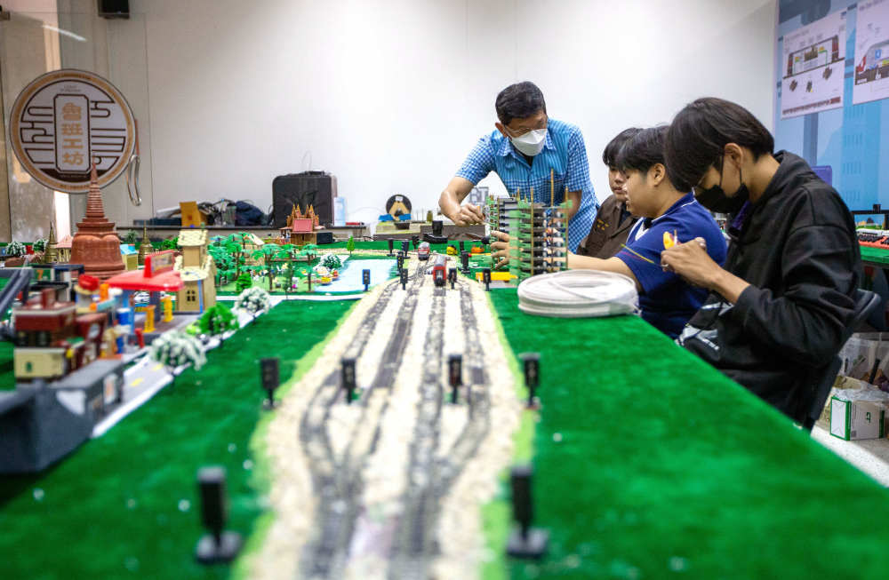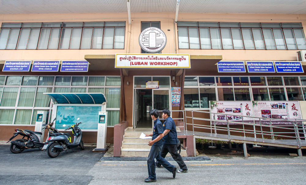 ↑泰國學生在大城技術學院內的魯班工坊學習交流