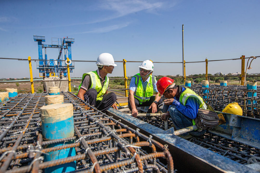 ↑中國建筑土木建設有限公司的工作人員在大城府的中泰鐵路建設現(xiàn)場工作,