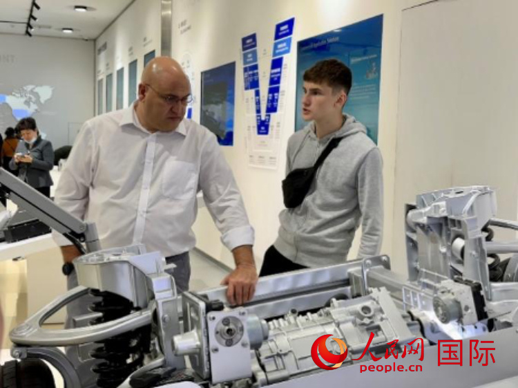 馬耳他瑪格麗特中學(xué)“中國角”的學(xué)生父親誒特伯特·斯肯布里參觀福建省寧德市寧德時代新能源科技股份有限公司。人民網(wǎng)記者 周雨攝