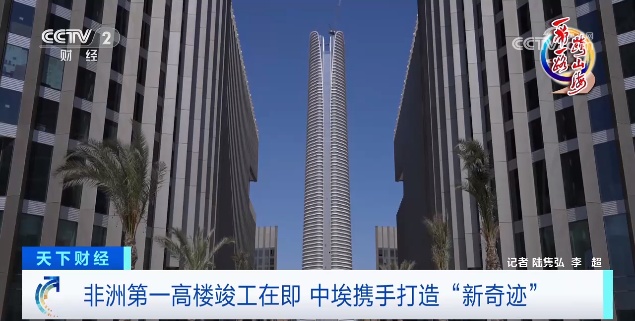 總臺記者 陸雋弘:這片已然拔地而起的現(xiàn)代化新城,就是在建中的埃及新行政首都中央商務(wù)區(qū)。其中最高大顯眼的這座大樓,便是高達(dá)385.8米的非洲第一高樓“標(biāo)志塔”。中央商務(wù)區(qū)項目的全部20棟建筑均已完成主體結(jié)構(gòu)及外裝幕墻的施工,整個項目正處于竣工前的最后沖刺階段。