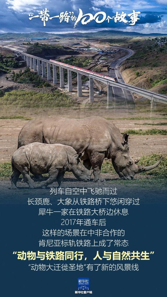 列車自空中飛馳而過,長頸鹿、大象從鐵路橋下悠閑穿過,犀牛一家在鐵路大橋邊休息……2017年通車后,這樣的場景在中非合作的肯尼亞標(biāo)軌鐵路上成了常態(tài)?!皠?dòng)物與鐵路同行,人與自然共生”,“動(dòng)物大遷徙圣地”有了新的風(fēng)景線。