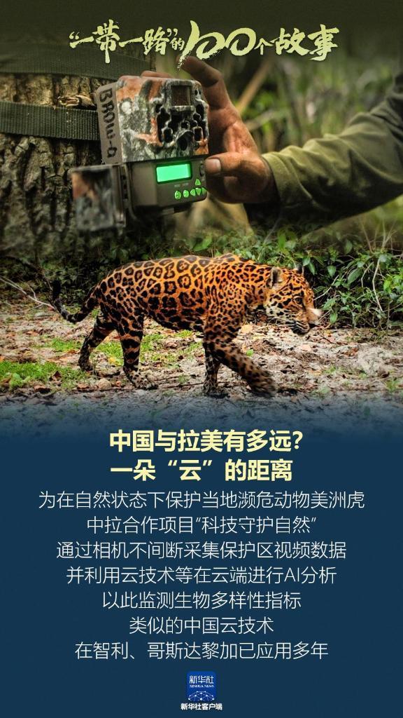 中國(guó)與拉美有多遠(yuǎn)?一朵“云”的距離。為在自然狀態(tài)下保護(hù)當(dāng)?shù)貫l危動(dòng)物美洲虎,中拉合作項(xiàng)目“科技守護(hù)自然”通過(guò)相機(jī)不間斷采集保護(hù)區(qū)視頻數(shù)據(jù),并利用云技術(shù)等在云端進(jìn)行AI分析,以此監(jiān)測(cè)生物多樣性指標(biāo)。類似的中國(guó)云技術(shù),在智利、哥斯達(dá)黎加已應(yīng)用多年。(記者:陳瑤、吳昊、馬曉澄)
