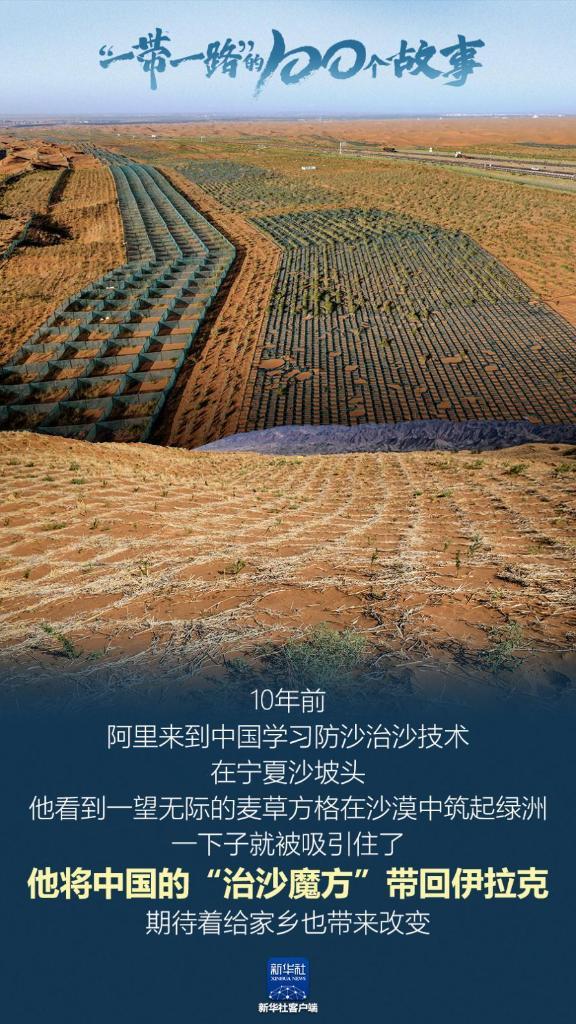 10年前,阿里來到中國學(xué)習(xí)防沙治沙技術(shù)。在寧夏沙坡頭,他看到一望無際的麥草方格在沙漠中筑起綠洲,一下子就被吸引住了。他將中國的“治沙魔方”帶回伊拉克,期待著給家鄉(xiāng)也帶來改變。