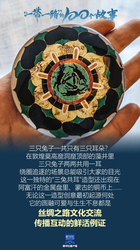 三只兔子一共只有三只耳朵?在敦煌莫高窟洞窟頂部的藻井里,三只兔子兩兩共用一耳、繞圈追逐的場(chǎng)景總能吸引大家的目光。這一獨(dú)特的“三兔共耳”造型還出現(xiàn)在阿富汗的金屬盤(pán)里、蒙古的銅幣上......無(wú)論這一造型創(chuàng)意最初起源何處,它的圓融可愛(ài)與生生不息都是絲綢之路文化交流、傳播互動(dòng)的鮮活例證。(記者:吳丹妮)