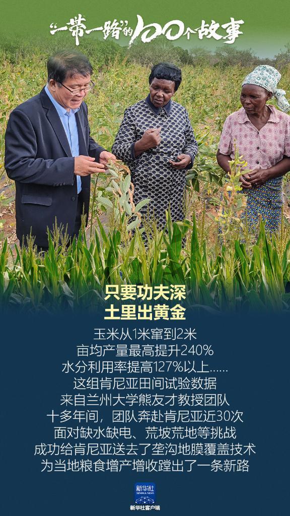 只要功夫深,土里出黃金。玉米從1米竄到2米,畝均產(chǎn)量最高提升240%,水分利用率提高127%以上……這組肯尼亞田間試驗(yàn)數(shù)據(jù),來(lái)自蘭州大學(xué)熊友才教授團(tuán)隊(duì)。十多年間,團(tuán)隊(duì)奔赴肯尼亞近30次,面對(duì)缺水缺電、荒坡荒地等挑戰(zhàn),成功給肯尼亞送去了壟溝地膜覆蓋技術(shù),為當(dāng)?shù)丶Z食增產(chǎn)增收蹚出了一條新路。(記者:張文靜、郭剛)
