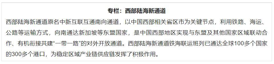 以中國西南山城重慶為運營中心的西部陸海新通道為國際產品進入中國市場開辟了新捷徑。以前,老撾的商品運到重慶、四川等西部內陸腹地,至少需要20多天。如今貨物搭乘西部陸海新通道的中老班列,從老撾到重慶只需4天。