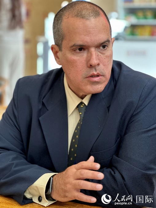 古巴拉丁美洲通訊社社長路易斯·恩里克·岡薩雷斯·阿科斯塔接受人民網(wǎng)記者采訪。人民網(wǎng) 亞瑟夫攝 |
