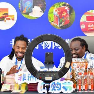 6月30日,在中非經(jīng)貿(mào)合作促進(jìn)創(chuàng)新示范園(湖南高橋大市場(chǎng)),來(lái)自非洲的主播在直播帶貨。新華社記者 陳澤國(guó) 攝