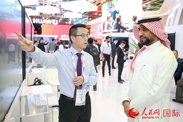 訪客在華為展臺(tái)參觀。 人民網(wǎng) 塔里克·易卜拉欣攝 |