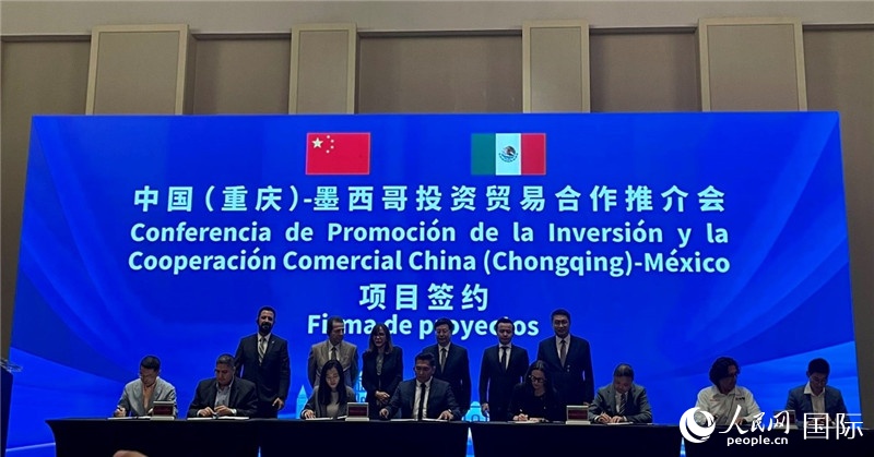 圖為中國(重慶)—墨西哥投資貿(mào)易合作推介會項(xiàng)目簽約現(xiàn)場。人民網(wǎng)記者 彭敏攝 |