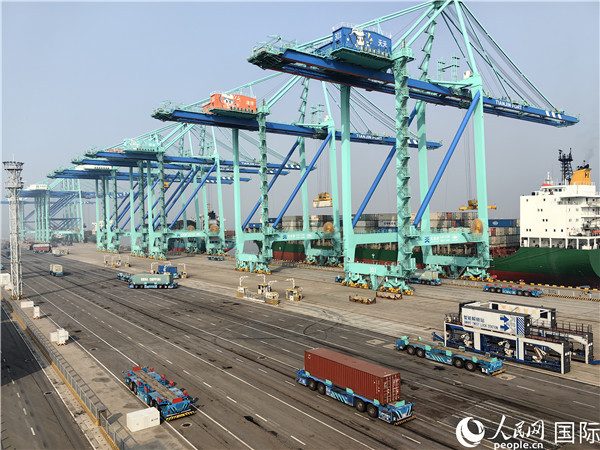天津港北疆港區(qū)C段智能化集裝箱碼頭。人民網(wǎng)記者 符園園攝