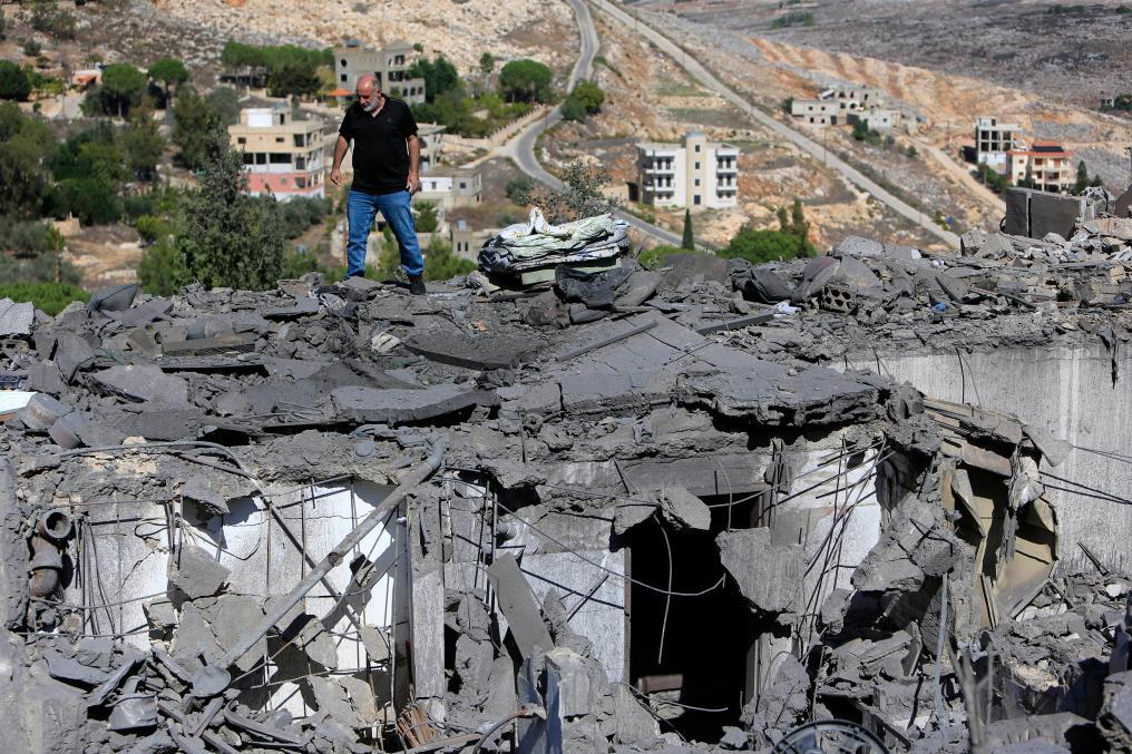 10月21日,一名男子在黎巴嫩南部查看遭空襲損毀的房屋。新華社發(fā)(阿里·哈希紹攝)