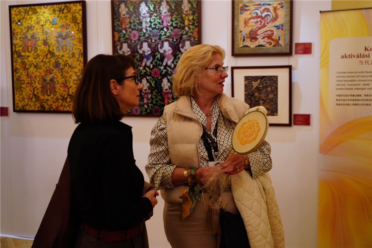 “絲路綺粲—中國絲綢藝術(shù)展”開幕式在匈牙利首都布達(dá)佩斯舉行。布達(dá)佩斯中國文化中心供圖